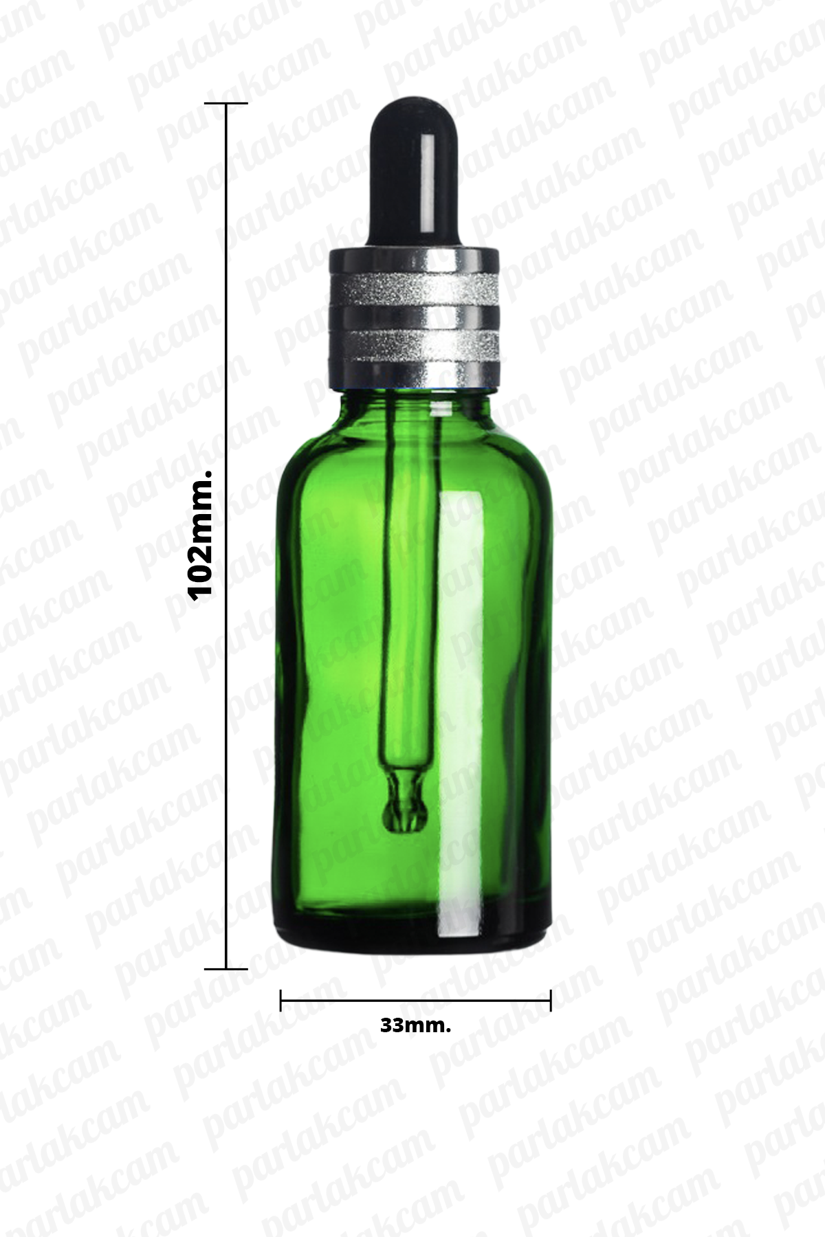 30ml Modern Gümüş Siyah Kapaklı Cam Damlalıklı Yeşil Şişe - Cam Şişe & Kavanoz | Parlakcam