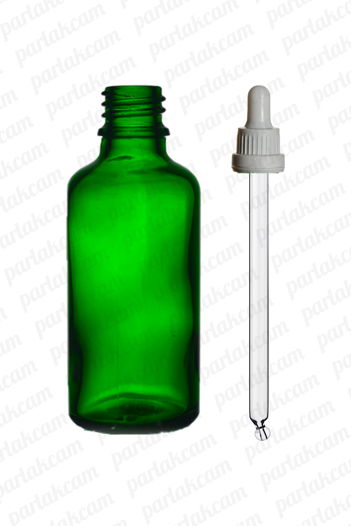 50ml Beyaz Kilit Kapaklı Cam Damlalıklı Yeşil Şişe